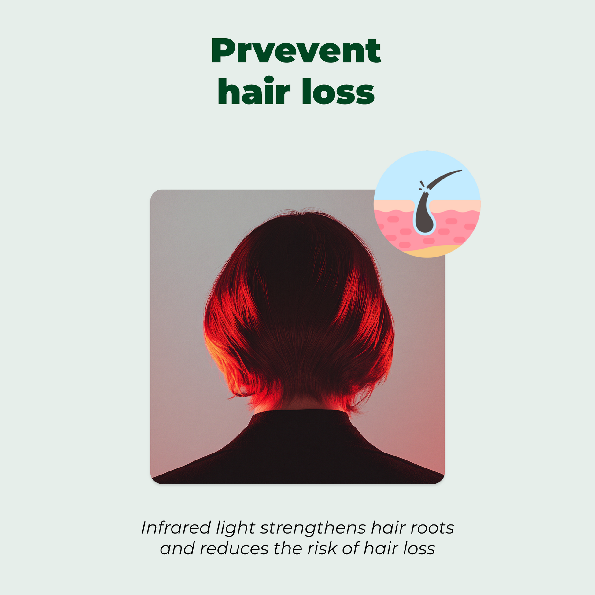 Infrared light soothes the scalp, reduces dryness, and helps eliminate dandruff.