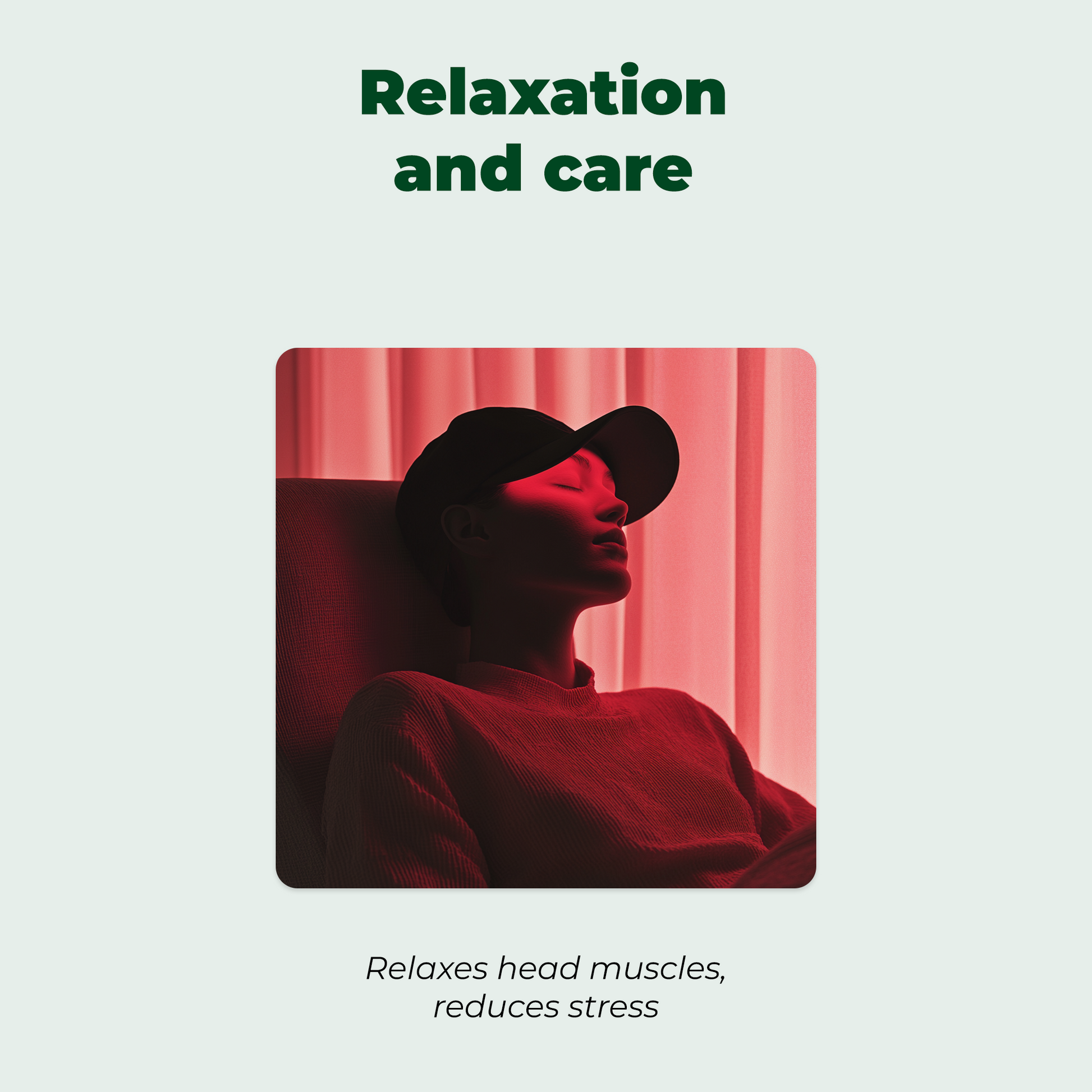 Red and infrared light relax head muscles, reduce stress, and enhance well-being—perfect for unwinding!